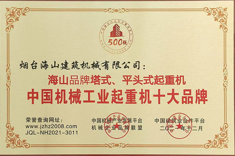 2021年評(píng)為起重機(jī)十大品牌